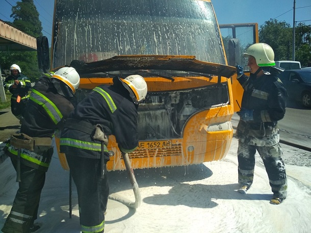 “Під час руху, запалав моторний відсік маршрутного автобуса з пасажирами. Водій автотранспорту, не розгубився і, не втрачаючи часу, провів першочергові заходи щодо евакуації людей, а також намагався загасити загоряння вогнегасниками”, – розповів він.