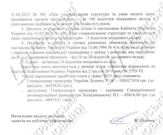 Согласно ответу ГПУ, должностной оклад генпрокурора составил 37 тысяч грн.