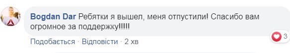 Около 9:30 Богдан сообщил, что его отпустили из военкомата. Он рассказал, что туда по его вызову приехала полиция, в присутствии которых военные пытались доказать, что Дар пришел к ним добровольно.