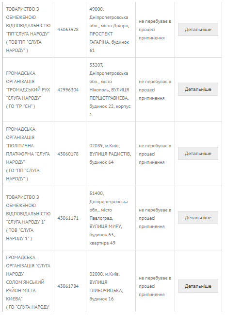 Кстати, не одна «Слуга народа» может стать жертвой подобных манипуляций. Так в реестре зарегистрировано несколько частных предприятий и обществ с ограниченной ответственностью «Голос». Именно так называется новая партия Славка Вакарчука. Также зарегистрировано общественное формирование по охране общественного порядка «Сила и честь» (такое же название имеет партия Игоря Смешко) и общественная организация «Европейская солидарность» (под таким названием Петр Порошенко пытается реинкарнировать свою партию). Причем эта общественная организация была зарегистрирована еще в 2013 году! Конечно, это не такое массовое явление, как в случае со «Слугой народа», но гипотетически владельцы этих юрлиц также могут попробовать подзаработать на вигодной избирательной конъюнктуре.