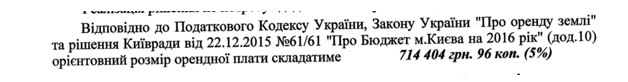 Согласно документу, ООО “Иновейшин Груп” должно было заключить с Киевсоветом договор аренды земельного участка. И платить за аренду более 714 тыс. гривен в год.