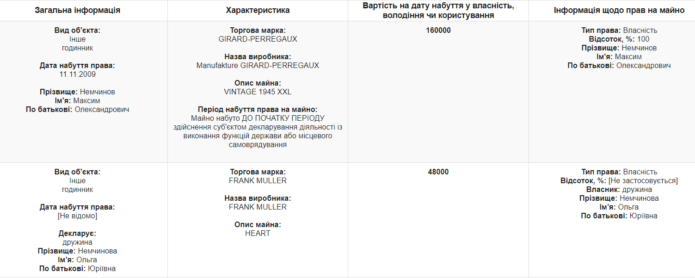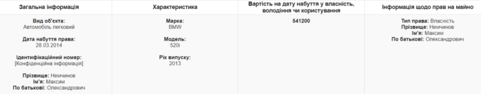 Навіть якщо додати задекларовану вартість двох годинників та авто виходить трохи більше 749 тисяч гривень, але ж ніяк не 1 мільйон 250 тисяч, які Немчинов отримав згідно змін у декларації.