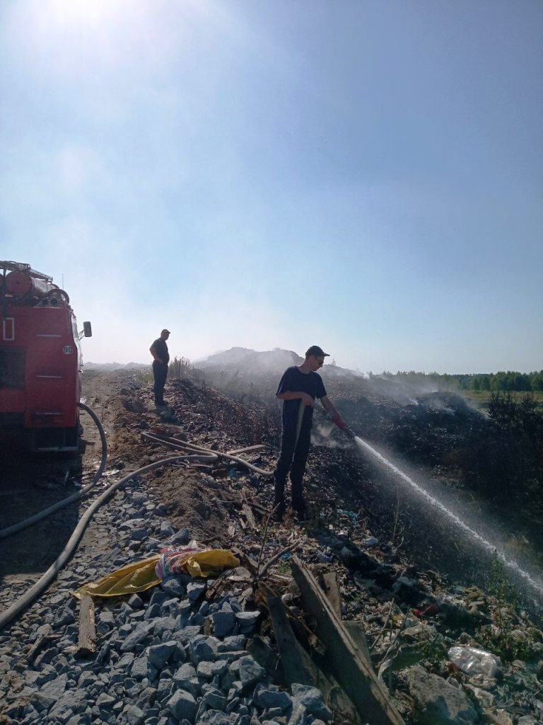 Сегодня утром спасатели вновь приступили к проведению работ по тушению пожара. Пока ситуация контролируемая. Угрозы распространения пожара нет.