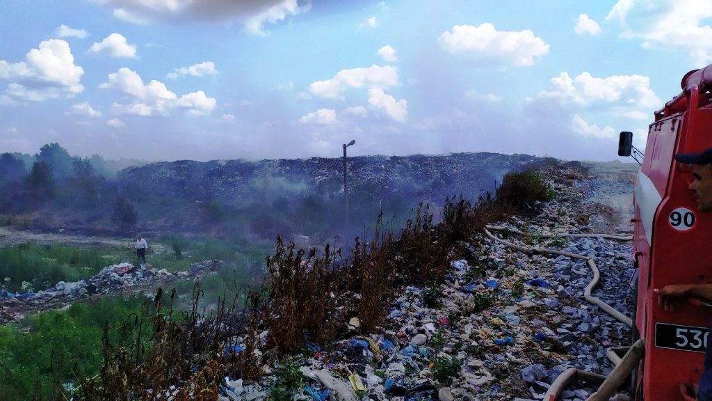 На территории урочища Ржатковка Новоград-Волынского района Житомирской области спасатели продолжают тушить мусор на полигоне твердых бытовых отходов, который загорелся отдельными участками 16 июня.