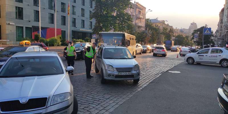 Поліція перекрила рух у центрі міста. Через це виникли затори.