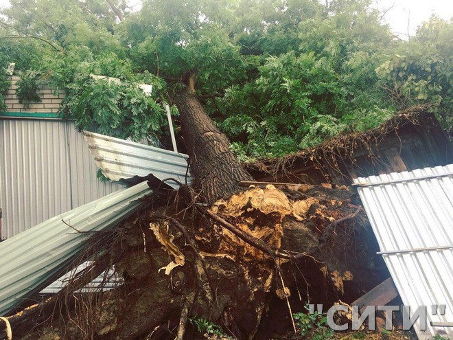 В результате сильных порывов ветра на проспекте Суворова, улице Ивана Франко, Пушкина, Нахимова, Соборной, Гагарина, Пароходной и других упали ветки деревьев, кое-где и вовсе упали целые деревья. В некоторых районах города оборваны линии электропередач, а улицы превратились в настоящие реки.