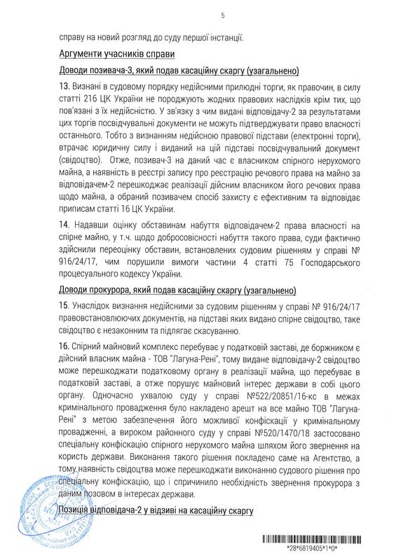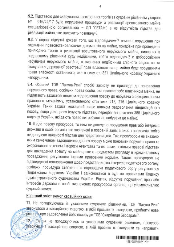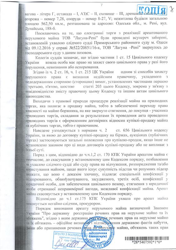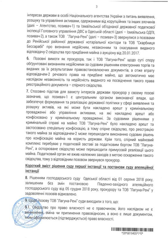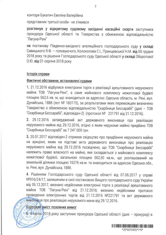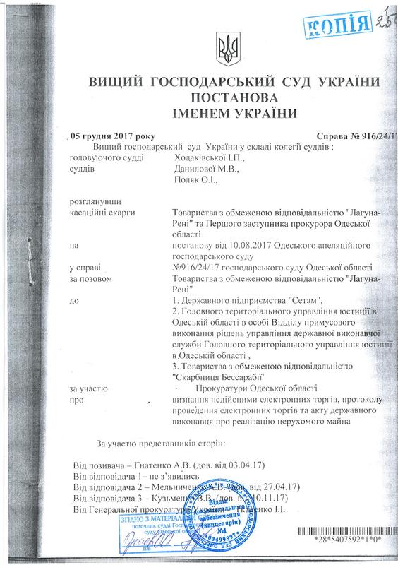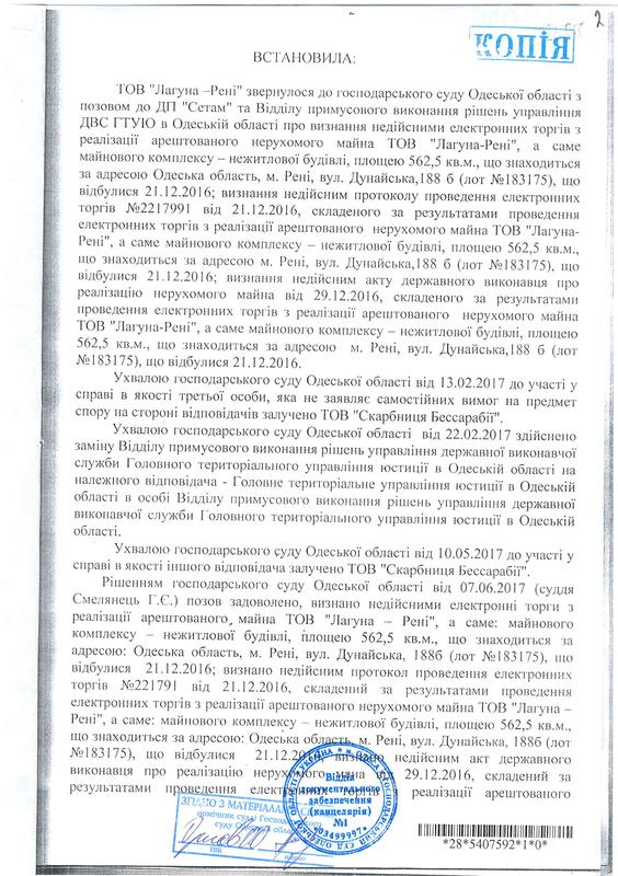 В марте 2019 г. ООО «Лагуна-Рени» обратилось в Хозяйственный суд Одесской области для обжалования договора купли-продажи.