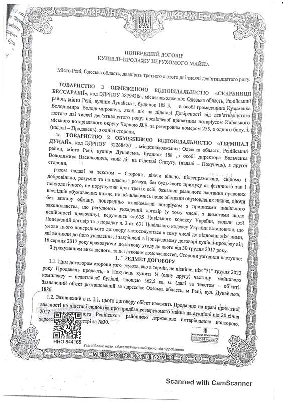 Так как отмечают юристы «Лагуна-Рени», пока предприятие отменяло электронные торги на которых без ведома собственника было незаконно продано ООО «Скарбница Бессарабии» имущественный комплекс, то «Скарбница Бессарабии уже успела перепродать комплекс фиктивно созданному третьему лицу - ООО «Терминал Дунай».