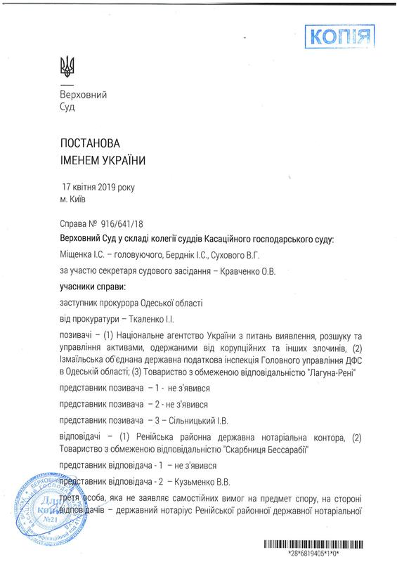 Теги: Рога НаталияВысший совет правосудияВерховный судООО Терминал ДунайСкарбниця БессарабииОдесская областьРениЛагуна-Рени
