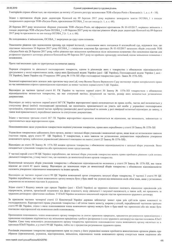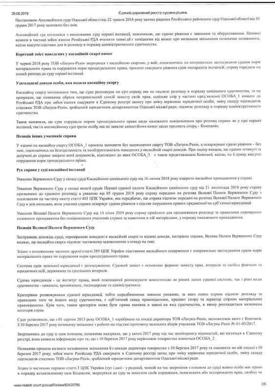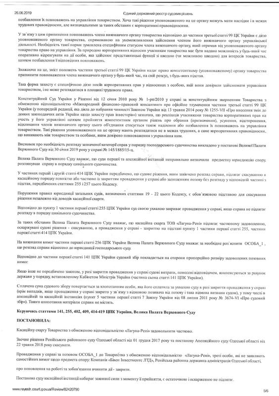 Как отмечают юристы «Лагуна-Рени»: «Судья, самой низшей инстанции, принял такое решение, фактически пересмотрел решение самой высшей инстанции в системе судоустройства - Большой Палаты Верховного Суда от 10 апреля 2019 г. С юридической точки зрения это абсурдно, и возникает только лишь один вопрос о достаточной квалификации и профессионализме судьи, которая в данной ситуации действует в интересах «американских инвесторов» ренийского происхождения».