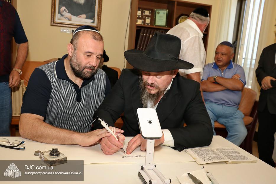 Как сообщает сайт еврейской общины Днепра, церемония начала написания нового Свитка Торы проходила в конференц-зале общины на 18-м этаже центра "Менора". Главный раввин Днепра Шмуэль Каминецкий отметил, что это уже шестой свиток, который создается по инициативе Реувена (Вячеслава Львовича) Капустина.