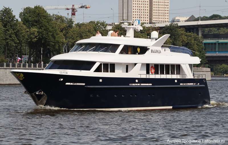 По данным СМИ, яхта была построена по заказу управления делами президента России к 300-летию Санкт-Петербурга в 2003 году. В 2005 году яхта была выкуплена компанией “Лукойл”, которая подарила ее Валаамскому монастырю, после чего тот, в свою очередь, передал “Палладу” в распоряжение Московской патриархии. Естественно, яхту стал использовать глава РПЦ Владимир Гундяев (патриарх Кирилл). “Паллада” – эксклюзивное судно класса люкс. Длина судна – 32 м, ширина – 7,45 м. Крейсерская скорость – 12,5 узла, а запас хода – 2500 морских миль.
