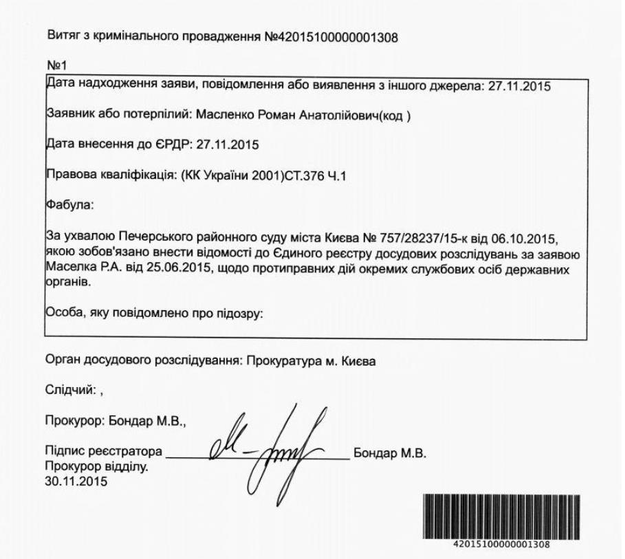 В свое время Автомайдан добился, чтобы по данному факту было зарегистрировано уголовное производство. Еще в ноябре 2015 года прокуратура Киева начала расследование и должна была проверить, соответствуют ли слова Чернушенко о давлении со стороны Алексея Филатова действительности и есть ли там признаки преступления. Представителя Автомайдана допросили, а вот о допросе господина Филатова ничего неизвестно. Прошло 3,5 года, но никаких результатов в расследовании нет. Возможно, председателю Совета судей Украины также стоит обратить внимание на это дело и требовать надлежащего расследования фактов влияния на суд.