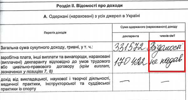 В бумажную декларацию 2015 года, которая есть в судейском досье, Кошова (Кошевая) указала мужа Дмитрия Чернушенко, который не сообщил свои заработки.