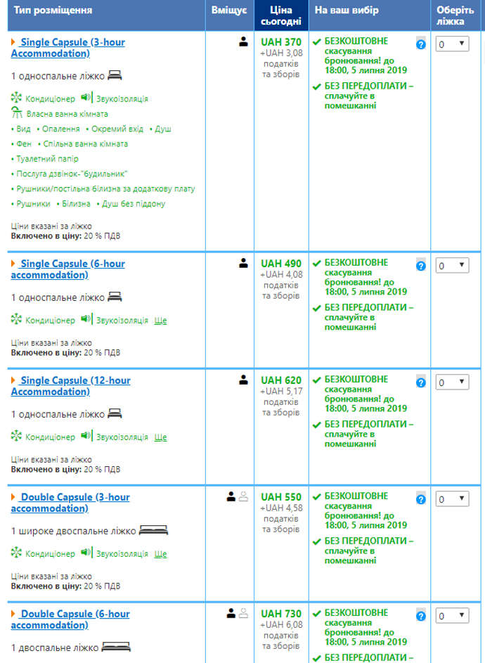 Цены в хостеле стартуют от 370 гривен за одноместную капсулу (за 3 часа) и от 550 гривен за двухместную капсулу (за 3 часа).
