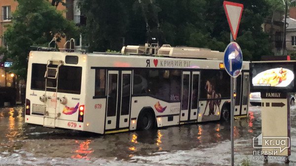 Во вторник, 2 июля, на Кривой Рог обрушился мощный ливень и ураган: многие улицы города затопило, а ветер обрушил множество деревьев.