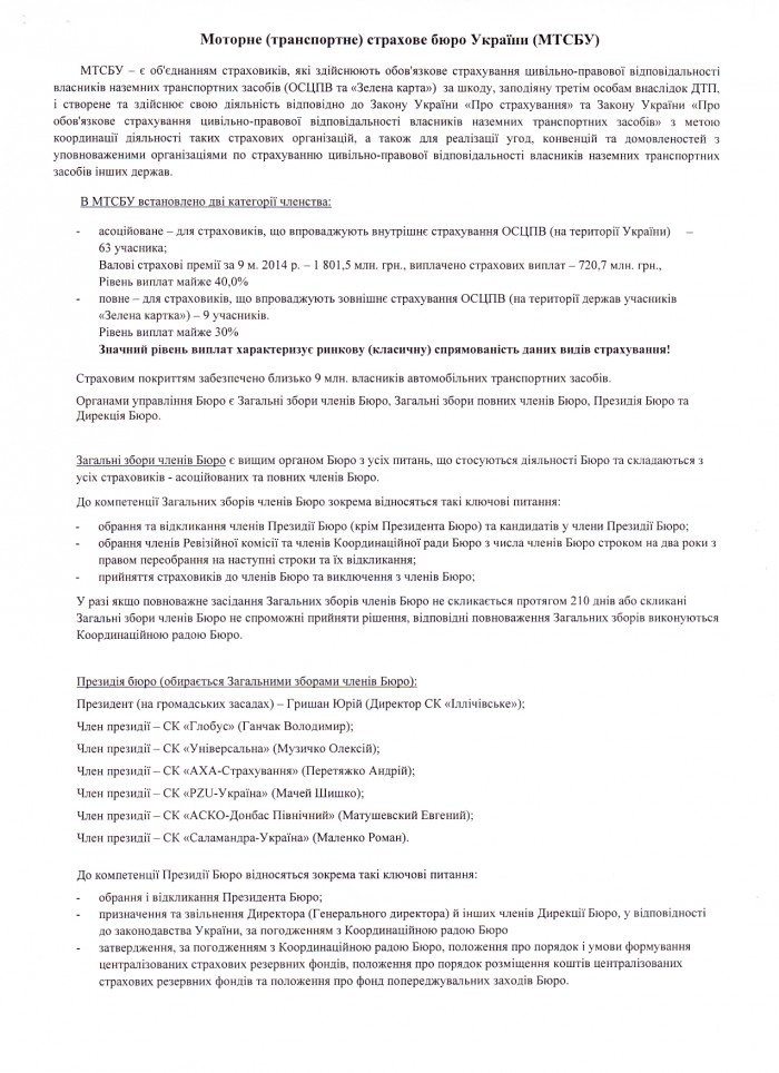 Он утверждает, что МТСБУ вместо выполнения своих прямых функций по повышению доверия к рынку и защите прав потерпевших, стимулирует криминализацию этого бизнеса и рост числа обманутых пользователей страховых услуг.