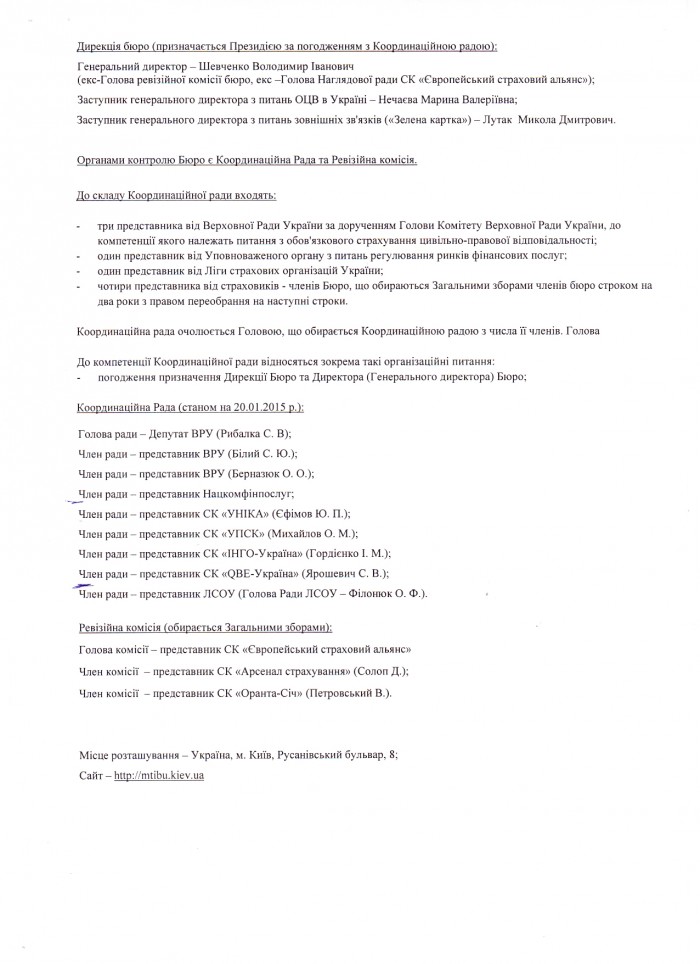 Наши источники утверждают, что руководитель МТСБУ Владимир Шевченко вообще странно исполняет свои обязанности, появляется на работе очень редко и то, на час-два в день. Это могут подтвердить рядовые сотрудники. Такое отношение привело к огромным проблемам не только в работе бюро, но и для всех участников рынка. Полищук приводит пример страховой компании «Гарант-авто», которая имела хроническую задолженность перед МТСБУ. Но, по его словам, гендиректор принял меры по прекращению ее членства в МТСБУ только в конце декабря. В итоге компания почти месяц подписывала страховые договора, по которым придется отвечать МТСБУ за счет средств добросовестных страховых компаний.