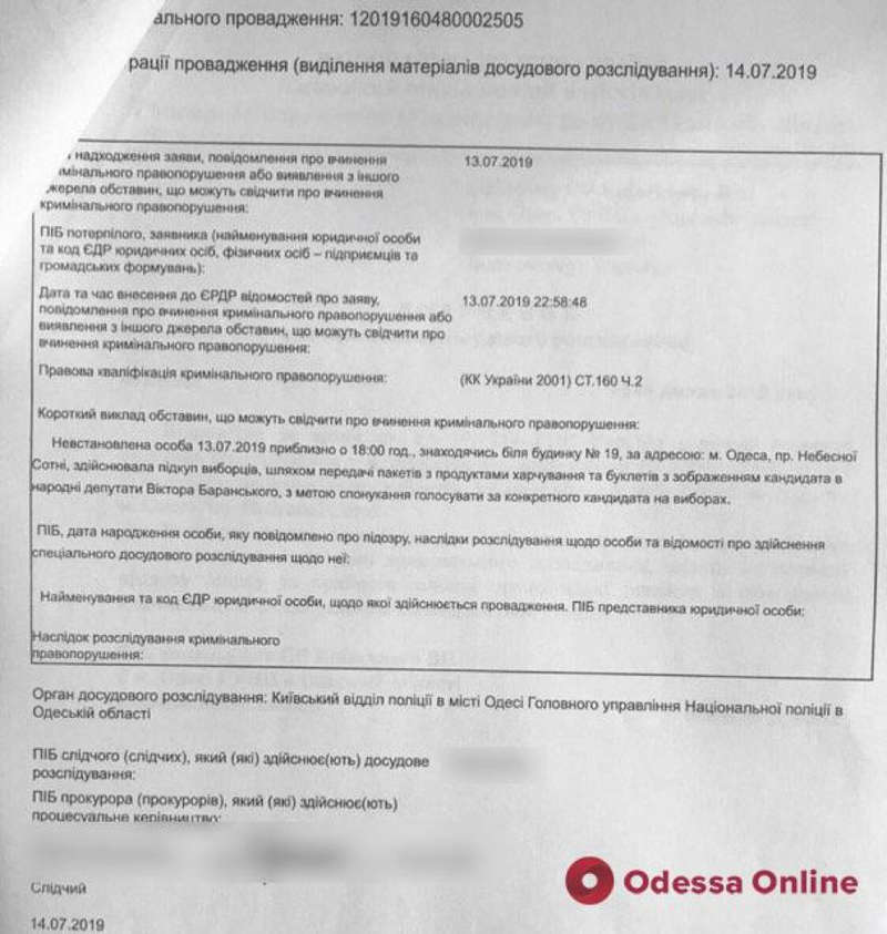 Тот факт, что на Таирова раздают продуктовые наборы с портретом Виктора Баранского, подтверждают и в полиции. Сведения об этом внесены в ЕРДР.