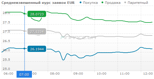Для сравнения, евро утром продавали по 28,07 грн - 26,19 грн.