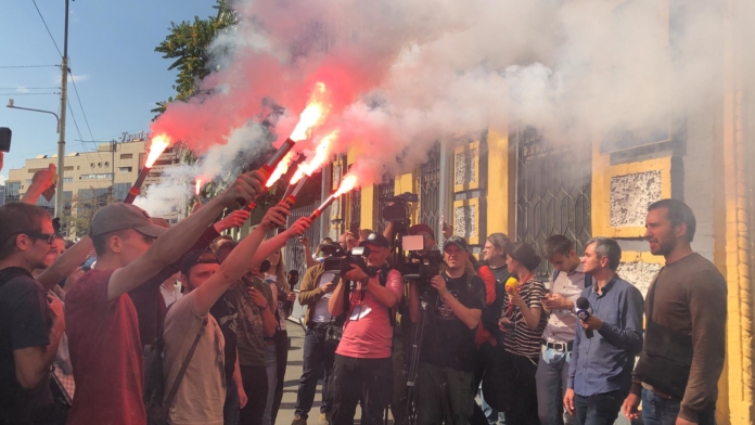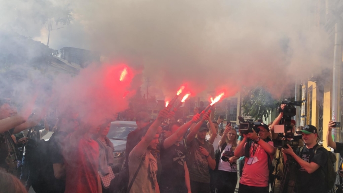 Під будівлею суду вони запалили фаєри та скандували “Беркутів за грати!” і “Суді, пам’ятайте – влада не вічна!”. Один із лідерів «С14» Сергій Мазур заявив, що активісти та захисники сімей загиблих на Майдані будуть добиватися в Апеляційному суді скасування рішення щодо домашнього арешту для екс-«беркутівця».