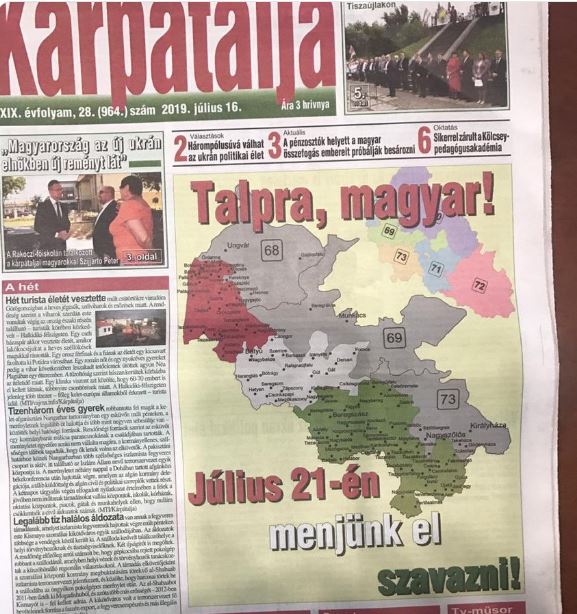 Как сообщает замминистра иностранных дел Егор Божок, в газете общества «Карпаталия» была опубликована статья «Венгр, вставай», проиллюстрированная картой, на которой регион обозначен, как принадлежащий Венгрии. Дипломат обратил на этот факт внимание Службы безопасности Украины и сообщил, что уже написал соответствующие письма.