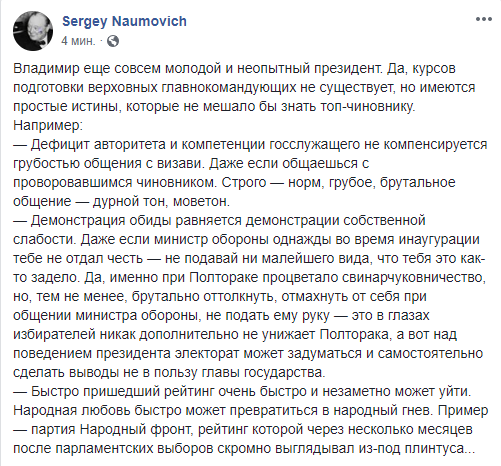 Правозащитник Сергей Наумович акцентировал на некомпетентности Зеленского