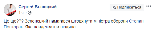 Нардеп Сергей Высоцкий назвал президента неадекватным человеком.