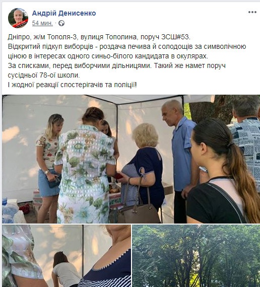 Народный депутат Андрей Денисенко на свой странице в Facebook подтвердил данную информацию и отметил, что к раздаче дешевой еды и питья причастен некий «человек в очках», идущий на выборы под «голубыми флагами».