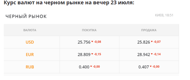 На наличном рынке доллар дешевел два раза, и совокупно за сутки просел на 10 копеек. К вечеру средний курс продажи «американца» людям оказался в широком диапазоне - 25,80-26,0 грн/$. Минимальный - на 25,65 грн/$, а максимальный - на 26,15 грн/$. Выкупают валюту у людей в рамках 25,45-25,77 грн/$.