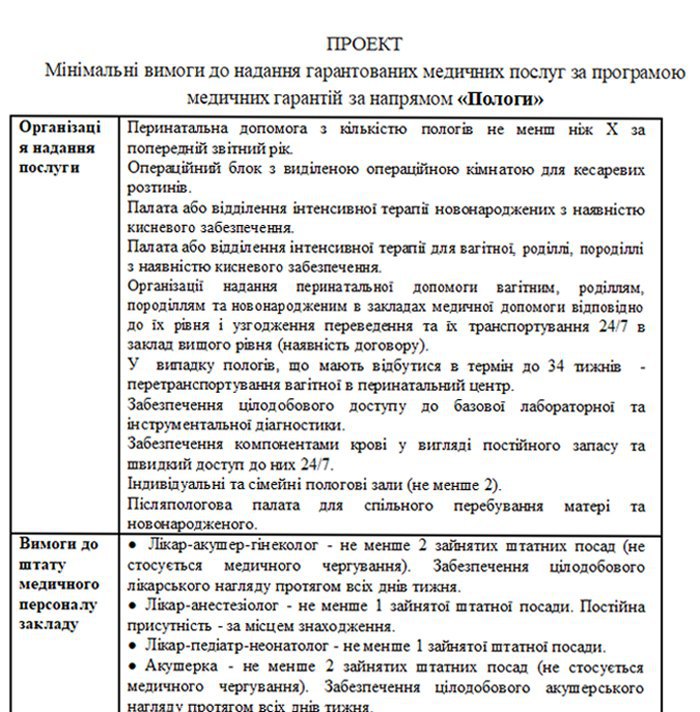 Например, в стране есть роддома, в которых принимают 200 родов в год. Это количество является недостаточным, чтобы врачи поддерживали необходимый уровень квалификации. По расчетам ВОЗ, должно быть минимум 500 для того, чтобы роды в заведении считались безопасными. НСЗУ планирует установить более низкую границу - около 300 родов в год, чтобы получить договор и финансирование в 2020 году, но в последующие годы этот порог будет повышаться.