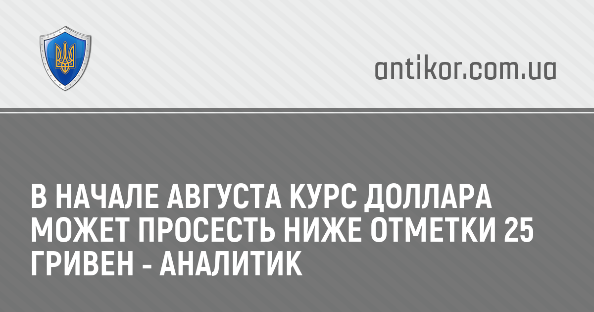 По словам аналитика, уже в первых числах августа курс доллара может опуститься ниже психологической отметки 25 гривен.