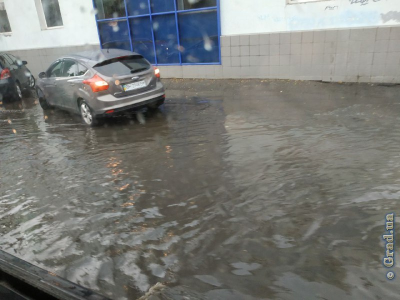 Гроза началась около 15:00: небо накрыло темными тучами, после чего хлынул ливень. Как уточняет grad.ua, традиционно затопило Таможенную площадь и улицу Приморскую, затруднив движение транспорта. Кроме того, реки образовались в исторической части города. В сети также появилось видео града в городе.