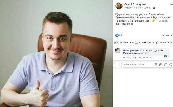 Ранее на обложке у этого аккаунта была Юлия Тимошенко за трибуной Верховной Рады. То, что Поскурко - тролль, подтверждает хотя бы его «перекличка-поздравление» с другим фейковым аккаунтом - Иваном Приходько. Сергей называет Ивана «другом и поьратимом», но тот тоже украл свою аватарку у Константина Зимина.