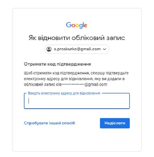 Фейсбук-аккаунт Сергея Проскурка привязан к электронной почте [email protected]. Об этом говорится на скриншотах письмо, которое мы получили. Эта почта, скорее всего, привязана к е-мэйлу Алексея Захарченко. По крайней мере, «почта для восстановления», которую предлагает «Гугл», начинается, как почта Захарченко и состоит из такого же количества символов.