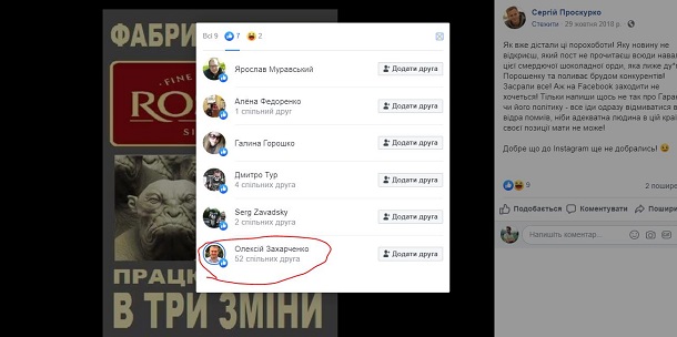 Скриншот аккаунта в фейсбуке Сергея Проскурка