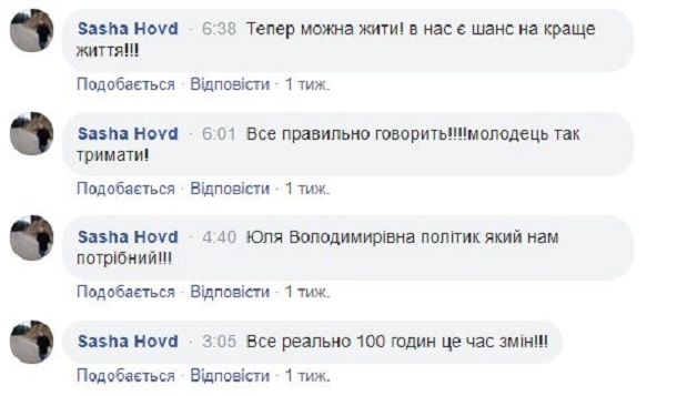 Кстати, еще перед выборами президента мы заметили на странице Юлии Тимошенко низкое качество комментариев от ботов. У них были украденные аватарки, их отзывы однотипны, шли блоками и содержали шаблонные фразы. И до сих пор ничего особенно не изменилось, если вы заглянете в комментарии на странице Тимошенко (особенно под видео).