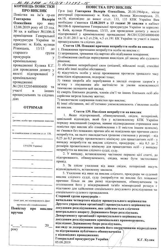 ГПУ вызвала на допрос Гонтареву, Филатова и Злочевского в качестве подозреваемых. Документы