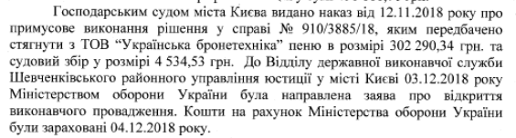 Отмечается, что еще в январе 2019 года Министерство обратилось в суд с целью взыскать с частной фирмы значительно большую сумму в 6,6 миллионов гривен из-за невыполнения условий контракта в рамках государственного оборонного заказа на поставку бронемашин.