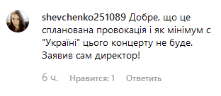 «Хорошо, что это спланированная провокация и как минимум с «Украиной» этого концерта не будет. Заявил сам директор!», «Ты хоть копейку для украинских воинов дала? Может в поддержку Украины в мокши сказала? Или против войны в мокшинському TV высказалась? Дорогие мои — бабло здесь хочешь загрести? Дулю  большую украинскую», «Удаляют коменты! Хорошее начало! Ну-ну, все прям заждались!» — писали комментаторы.