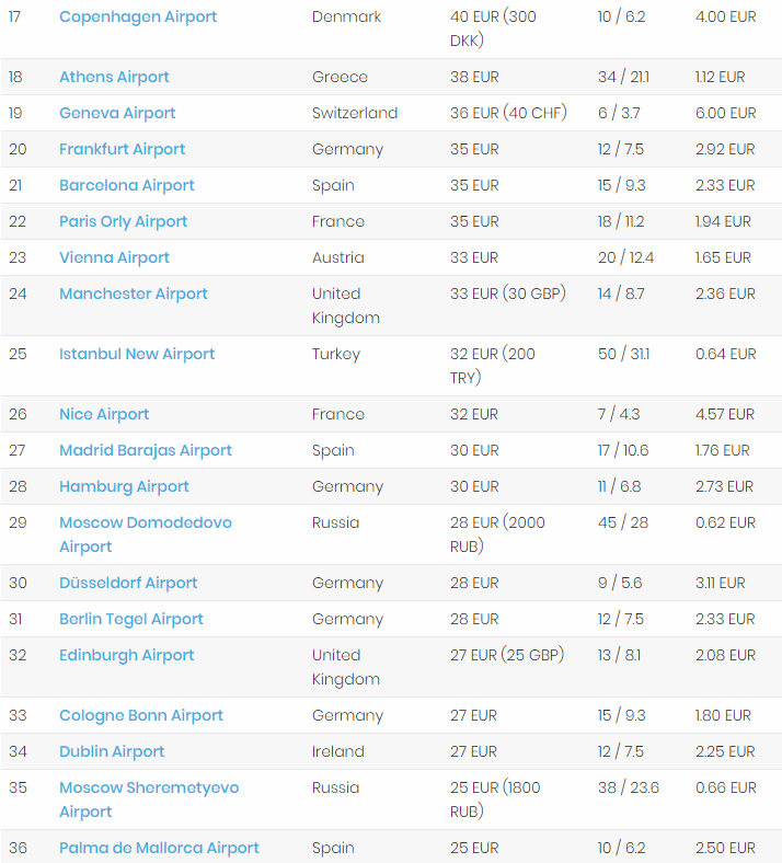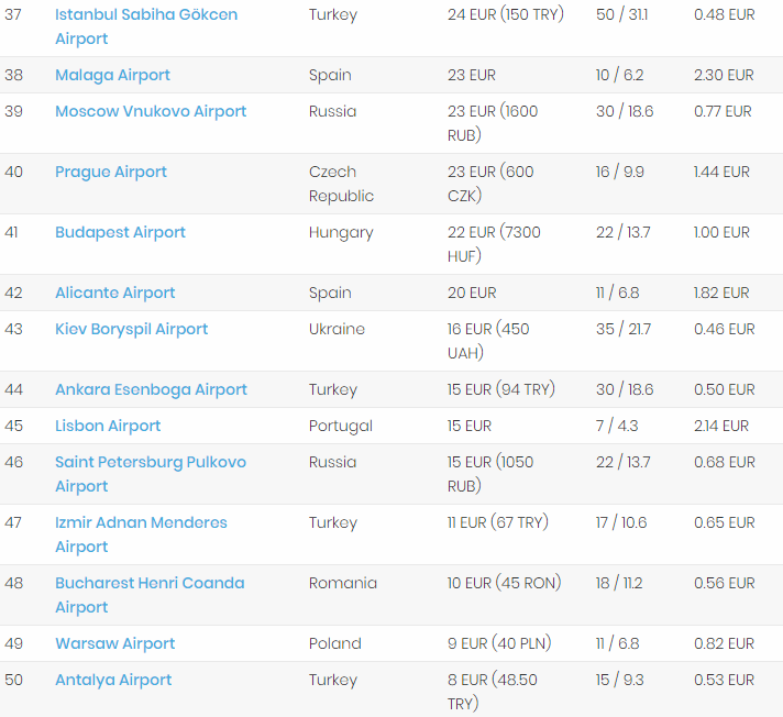 Стоить отметить, что разница между дорогими и дешевыми аэропортами составляет десятки разы. Всего в исследовании участвовало 50 воздушных гавань.
