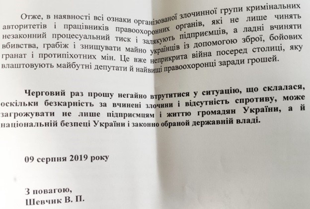 Валерій Шевчик просить Президента Україні Володимира Зеленського втрутитись в цю ситуацію. Та відреагувати як на силовий тиск, так і на відсутність адекватної реакції з боку правоохоронних органів.