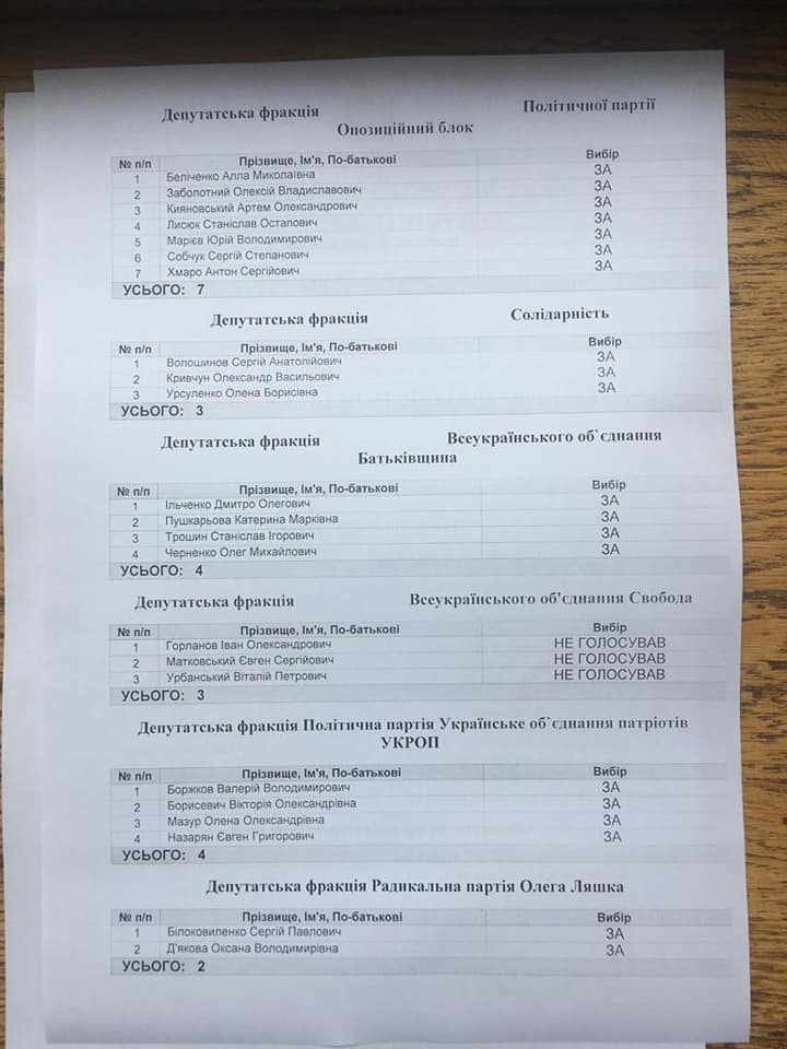 «Единогласно «за» голосовали фракции: Солидарность, Родина, Наш Край, Оппоблок, радикалы Ляшко и Укроп. Единогласно отказалась голосовать только фракция ВО «Свобода». Скажу только, что против такой ситуации в местных ячейках партий, куда преимущественно собирается единодушный беспринципный хлам, который потом солидарно голосует за гадкие решение, и выступала Катя», — добавила журналистка.