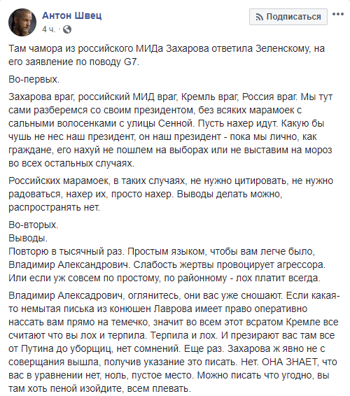 Блогер Антон Швец считает, что слабость Зеленского провоцирует агрессора.