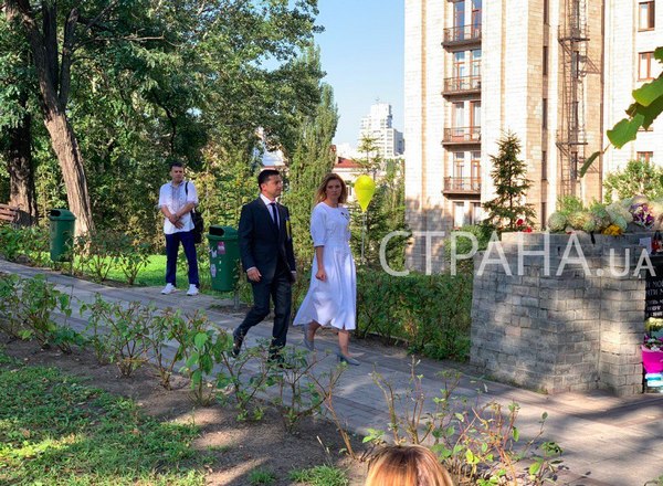 В торжественных мероприятиях в четь 28-й годовщины Независимости Украины, которые сейчас проходят в центре столицы, президента Владимира Зеленского сопровождает супруга Елена.