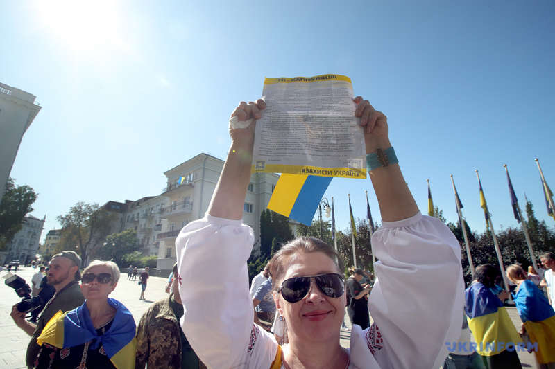 Завершилась акция массовым исполнением государственного гимна Украины.