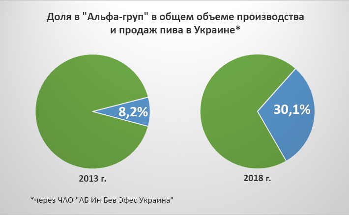 Она в свою очередь на 98% принадлежит AB InBev Efes BV, зарегистрированной в Нидерландах и входящей в "Альфа-груп". Кроме того, ЧАО "АБ ИнБев Эфес Украина" владеет и донецким пивзаводом "Сармат" – его компания перестала контролировать после захвата Донецка боевиками "ДНР".