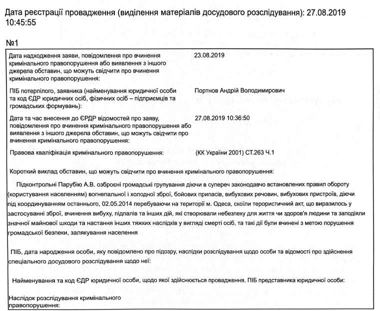 В материалах уголовного производства говорится, что новоизбранный нардеп имел отношение к трагедии в Одессе 2 мая 2014 года. Что преступные группировки по его указанию совершили террористический акт.