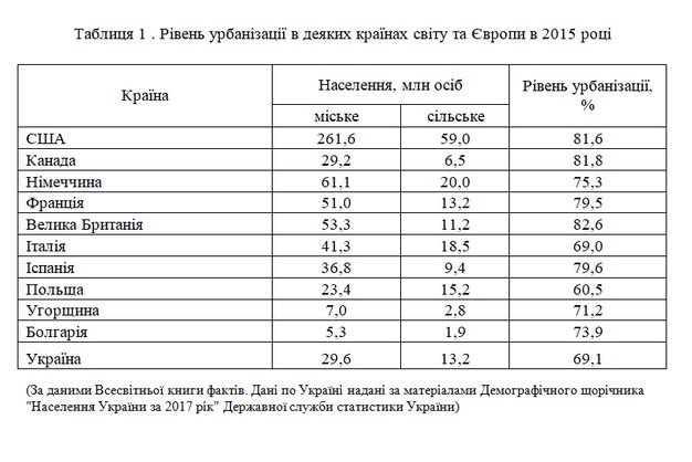 Уровень урбанизации населения в Украине за период 2000-2015 год вырос на 1,8% и составил 69,1% (Таблица 1).