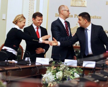 Теперь вопрос, зачем Украине досрочные выборы. К правительству у граждан множество претензий. Повышение тарифов, цен, гривневые "американские горки". Как одномоментно удовлетворить все претензии граждан? Низложить Кабмин Яценюка. Для этого есть простейший путь - развал коалиции. По всей видимости, все идет к тому, что если и не все три названные фракции покинут коалицию, то одна из них к этому очень близка. И это будет не фракция Ляшко. Олегу Валерьевичу и в коалиции удобно. Похоже, главным зачинщиком фронды станет "Батькивщина".